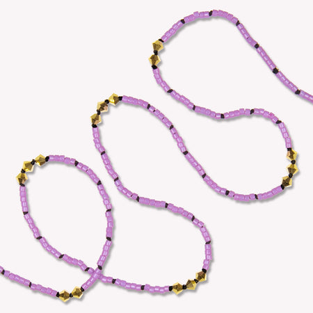 Minimalist design of gold-plated Czech crystals and Japanese glass seed beads hand-knotted on a luxurious black silk cord for contrast. Finished with a sterling silver clasp. Subtle sparkle adds the perfect pop of 'je ne sais quoi' to this understated beauty.